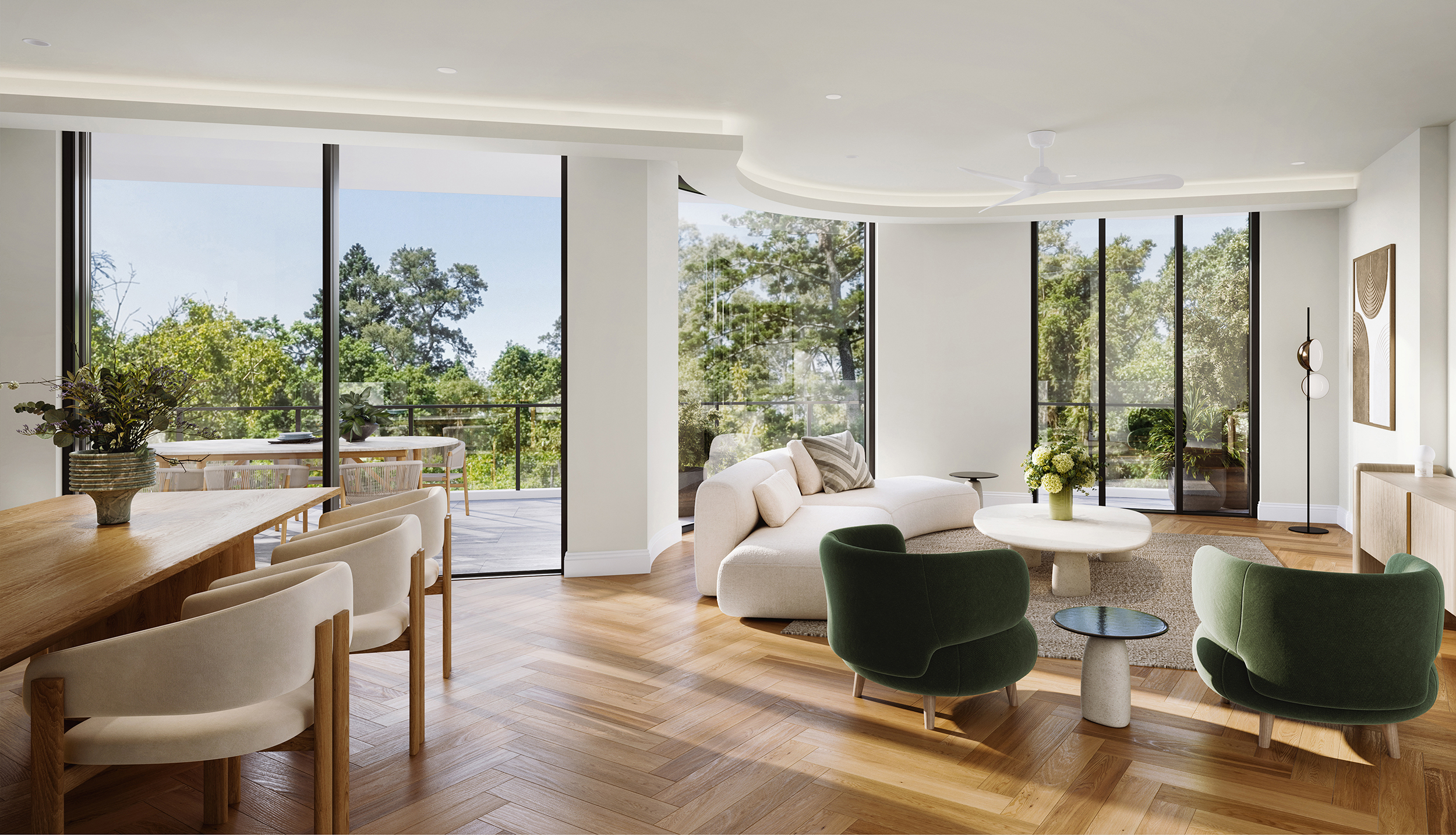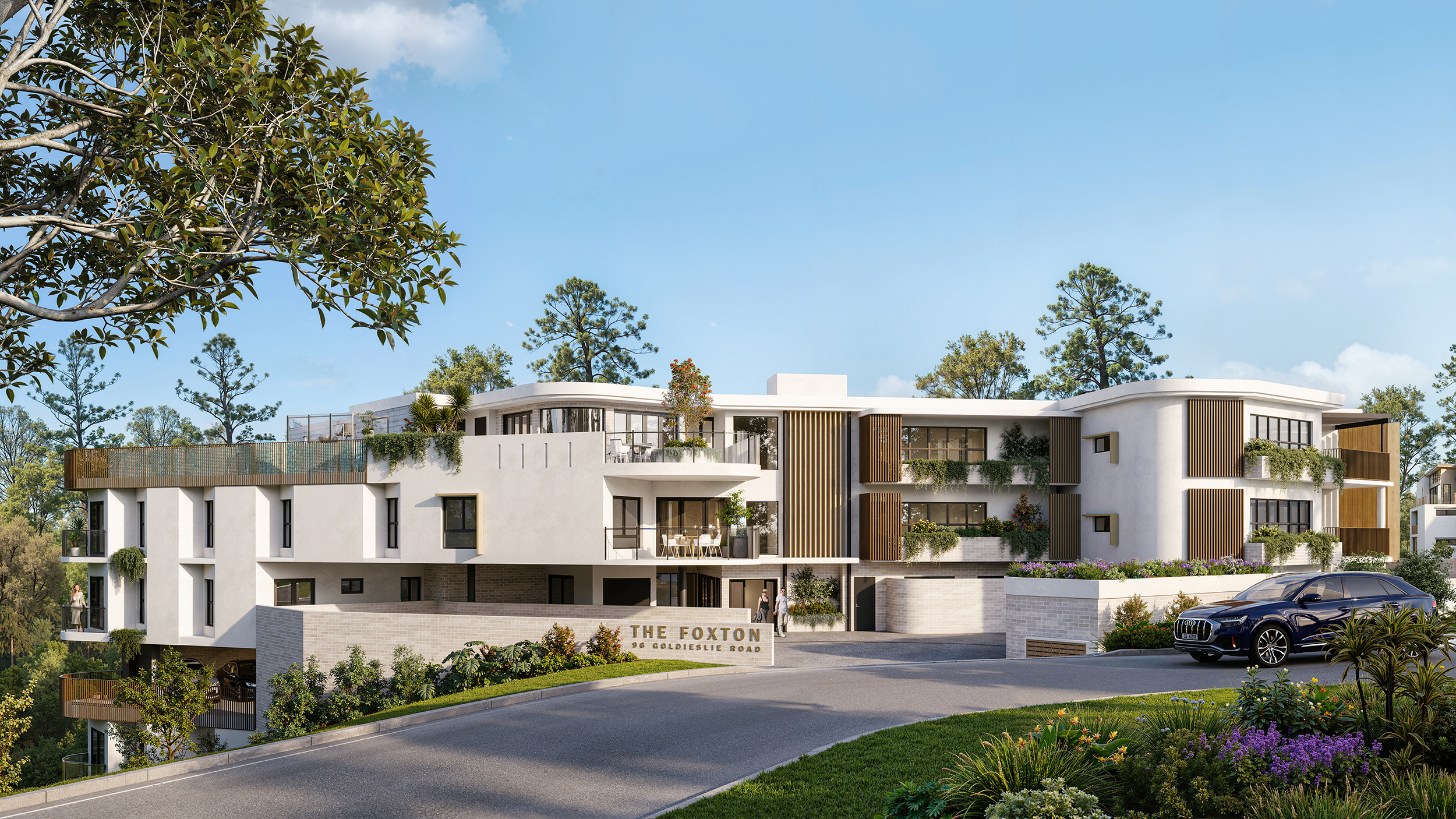 A stunning work of architecture, seamlessly blending into its natural surroundings. Nestled amidst lush, verdant greenery along the banks of the Brisbane River, The Foxton is an exclusive collection of fifteen impeccably designed three-bedroom residences.